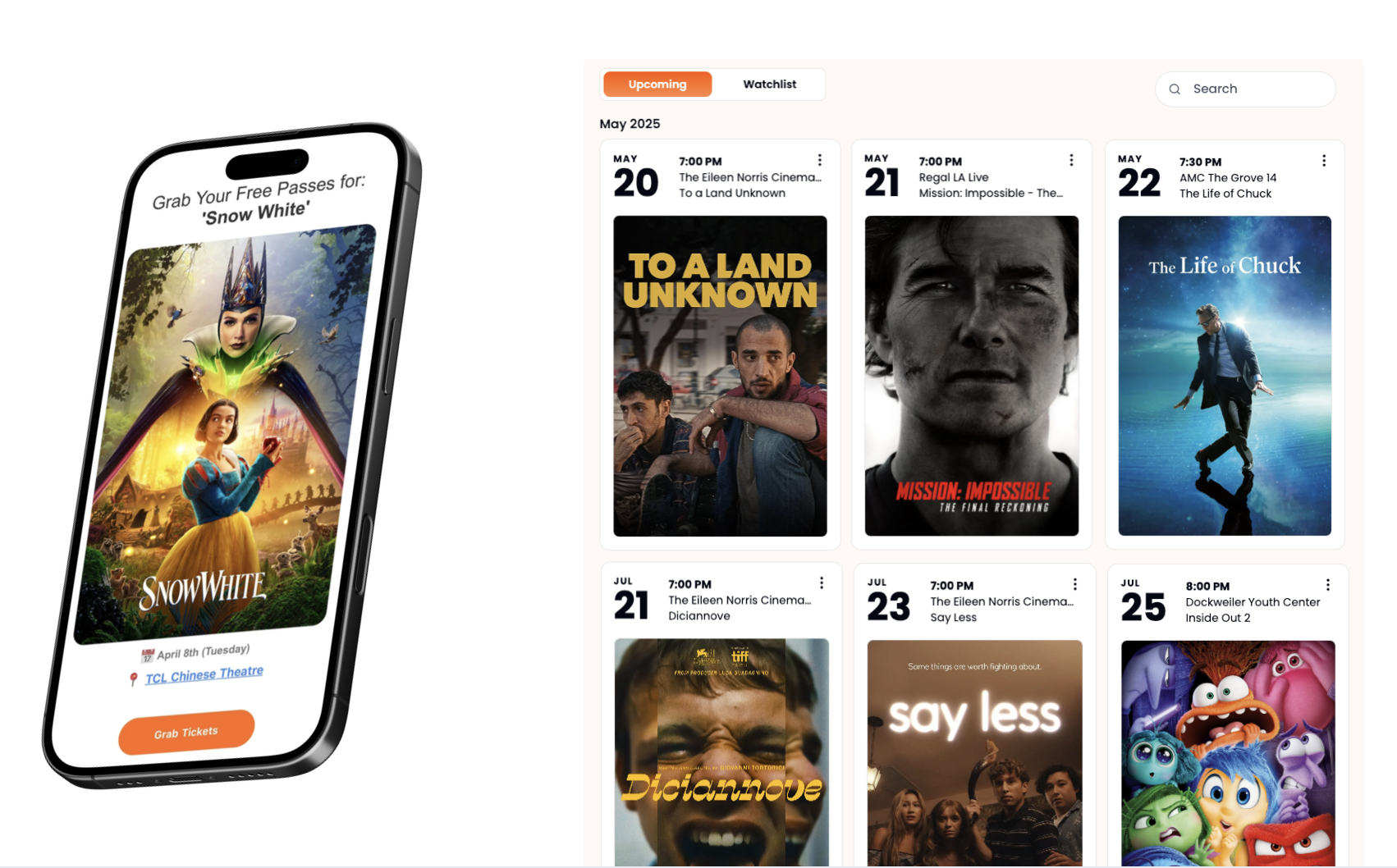 Free movie screenings happen often, but RSVP links are scattered and buried across the web. I built custom Python scraper agents to aggregate public listings in real time so users can receive email or text alerts with free passes before they sell out. Now serving thousands across 25+ U.S. cities — backed by LvlUp Ventures.